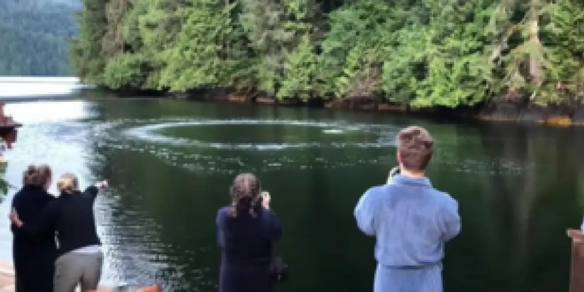 As they sat at the lakeside for breakfasts, bubbling water next to them shocked the guests.