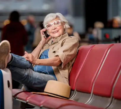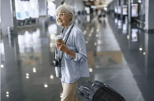 The people at the terminal gave the old lady applause. She thanked them and headed toward the gate.