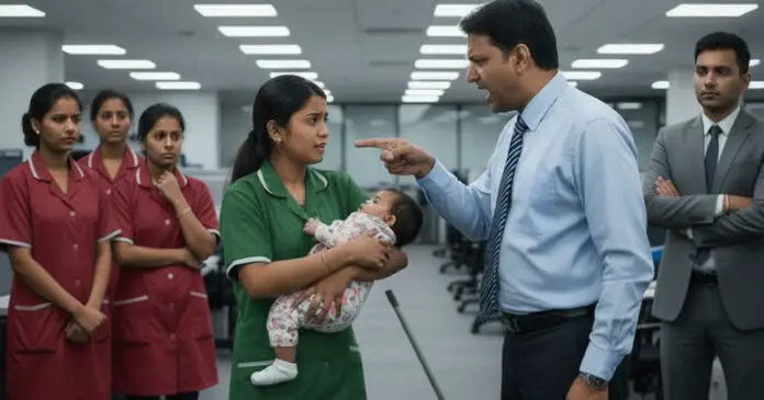 Jyoti couldn’t hide her tears. She feared she could lose her job, so she begged. “Sir… please forgive me. I have no one else. I can’t leave my daughter alone.”